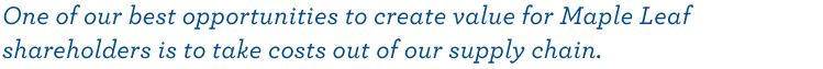 In the past 15 years, we’ve acquired more than 30 companies, and we have a major opportunity to achieve greater efficiencies by concentrating these operations in fewer, larger-scale plants. We can achieve cost reductions by streamlining and investing in our prepared meats and bakery businesses, such as our new Ontario bakery to be commissioned in 2011. We’re also investing in efficiency by rolling out SAP as our integrated operating systems platform to give us faster, richer data on Maple Leaf’s business performance. These transformational initiatives will involve a substantial investment and result in Maple Leaf becoming an even stronger competitor.