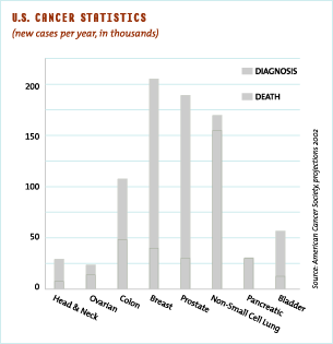 Bladder cancer is among the most common cancers in the United States. The American Cancer Society estimates that in 2002 there will be approximately 55,000 new cases of bladder cancer and about 13,000 deaths from this disease. With many bladder cancers exhibiting mutated forms of the H-ras oncogene, we recognize the opportunity to develop OSI-754 to address a specific and largely unmet medical need.