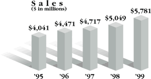 825 office supply superstores in 46 states, the District of Columbia and Canada. This aggressive expansion was reflected in our 1999 Stores Division sales, which rose 15% to $5.8 billion, compared with $5.0 billion in 1998.