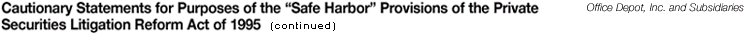 Sources and Uses of Cash: We believe that our current level of cash and cash equivalents, future operating cash flows, lease financing arrangements and funds available under our credit facilities and term loan should be sufficient to fund our planned expansion, integration and other operating cash needs for at least the next year. However, there can be no assurance that additional sources of financing will not be required during the next twelve months as a result of unanticipated cash demands, opportunities for expansion, acquisition or investment, changes in growth strategy, changes in our warehouse integration plans or adverse operating results. We could attempt to meet our financial needs through the capital markets in the form of either equity or debt financing. Alternative financing will be considered if market conditions make it financially attractive. There can be no assurance that any additional funds required by us, whether within the next twelve months or thereafter, will be available to us on satisfactory terms. Our inability to access needed financial resources could have a material adverse effect on our financial position or operating results. Effects of Certain One-time Charges: During the fourth quarter of 2000, we conducted a review of all aspects of our business, with particular attention on our North American Retail Division and on our distribution and supply chain activities (see the Business Review section of our for further details). We expect that these decisions will result in increasing our Companys profitability and efficiency in the future. However, this analysis involves many variables and uncertainties; and, as a result, we may not achieve any of the expected benefits. In 1999, we announced one-time charges against earnings for slow-moving inventories in our warehouses and stores and for accelerated store closings and relocations. Additionally, each quarter since our August 1998 merger with Viking, we have incurred merger and restructuring charges and credits. There can be no assurance that additional charges of this nature will not be required in the future as well. Such charges, if any, could have a materially adverse impact on our financial position or operating results in the future. Economic Downturn: In the past decade, the favorable United States economy has contributed to the expansion and growth of retailers. Our country has experienced low inflation, low interest rates, low unemployment and an escalation of new businesses. The economy has recently begun to show signs of a downturn. The Federal Reserve has recently reduced interest rates, and the stock market has shown signs that it may no longer be a bull market. The retail industry, in particular, is displaying signs of a slowdown, with several specialty retailers, both in and out-side our industry segment, reporting earnings warnings in the last few months. This general economic slowdown may adversely impact our business and the results of our operations. Executive Management: Since the appointment of our new Chief Executive Officer, we have evolved our management organization to better address the future goals of our Company. This new organization has vacancies in several key positions, including the Chief Financial Officer. A search is underway to identify the best individuals to fill these positions; however, the process may be a protracted one. Furthermore, the new management structure may not be ideal for our Company and may not result in the benefits expected; and, as a result, may materially and adversely affect our future operating results. Disclaimer of Obligation to Update We assume no obligation (and specifically disclaim any obligation) to update these Cautionary Statements or any other forward-looking statements contained in this Annual Report to reflect actual results, changes in assumptions or other factors affecting such forward-looking statements.