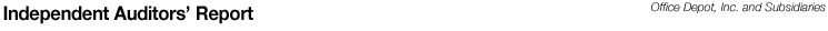 To the Board of Directors of Office Depot, Inc. We have audited the consolidated balance sheets of Office Depot, Inc. and Subsidiaries as of December 30, 2000 and December 25, 1999, and the related consolidated statements of earnings, stockholders equity and cash flows for each of the three years in the period ended December 30, 2000. These financial statements are the responsibility of the Companys management. Our responsibility is to express an opinion on these financial statements based on our audits. We conducted our audits in accordance with auditing standards generally accepted in the United States of America. Those standards require that we plan and perform the audit to obtain reasonable assurance about whether the financial statements are free of material misstatement. An audit includes examining, on a test basis, evidence supporting the amounts and disclosures in the financial statements. An audit also includes assessing the accounting principles used and significant estimates made by management, as well as evaluating the overall financial statement presentation. We believe that our audits provide a reasonable basis for our opinion. In our opinion, the consolidated financial statements referred to above present fairly, in all material respects, the financial position of Office Depot, Inc. and Subsidiaries as of December 30, 2000 and December 25, 1999 and the results of their operations and their cash flows for each of the three years in the period ended December 30, 2000 in conformity with accounting principles generally accepted in the United States of America.
