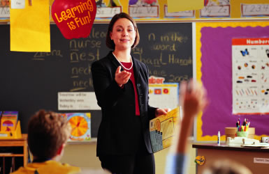 Carrie Ortsey shown here in a Chicago-area classroom reach out