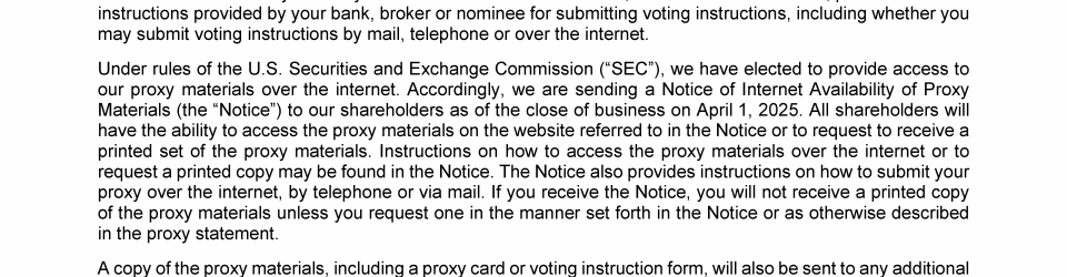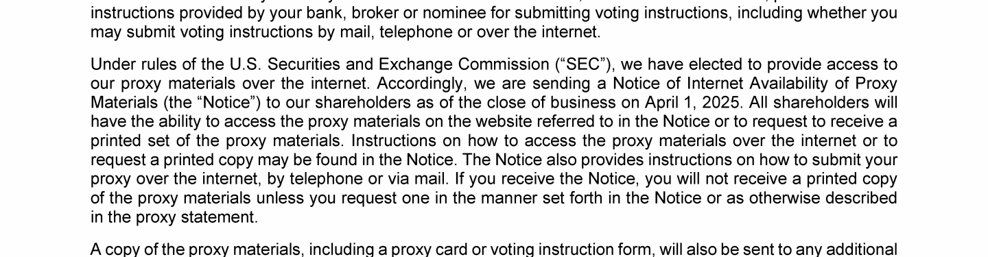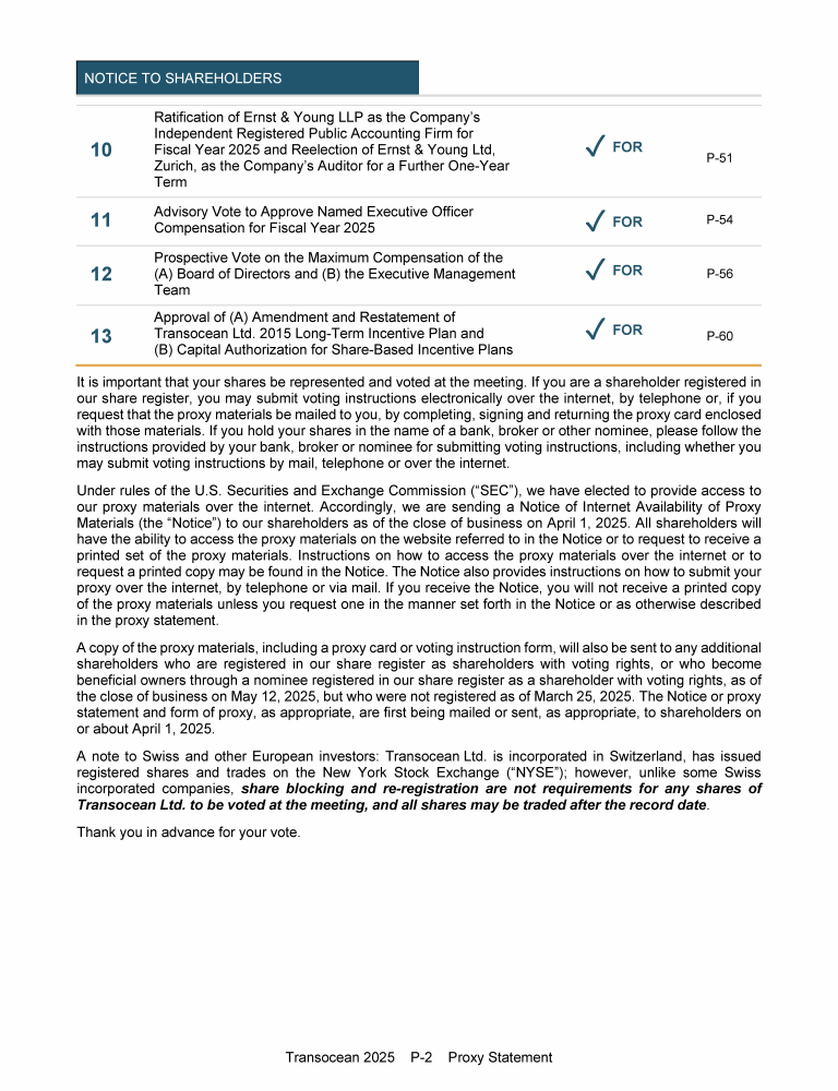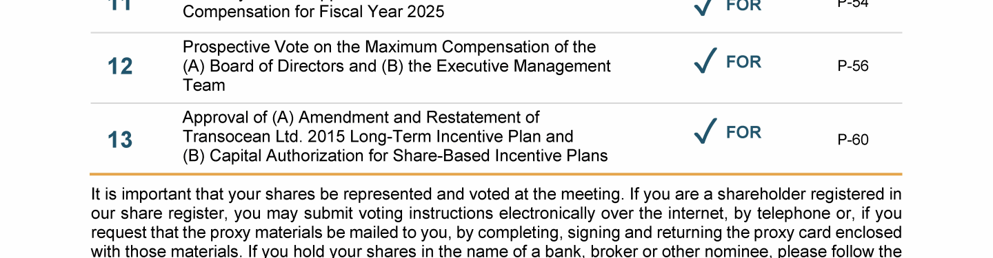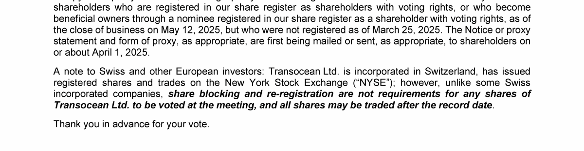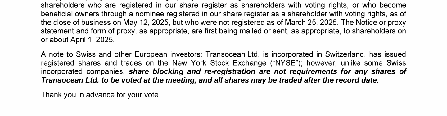 Invitation to 2025 Annual General Meeting of Transocean Ltd.