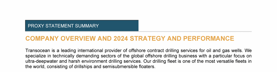 Agenda Item 1. Approval of (A) the 2024 Annual Report, Including the Audited Consolidated Financial Statements of Transocean Ltd. for Fiscal Year 2024 and the Audited Statutory Financial Statements of Transocean Ltd. for Fiscal Year 2024, (B) the Swiss Statutory Compensation Report for Fiscal Year 2024 and (C) the Swiss Statutory Report on Non-Financial Matters for Fiscal Year 2024