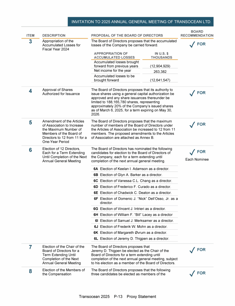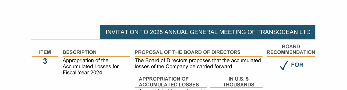 Invitation to 2025 Annual General Meeting of Transocean Ltd.