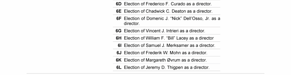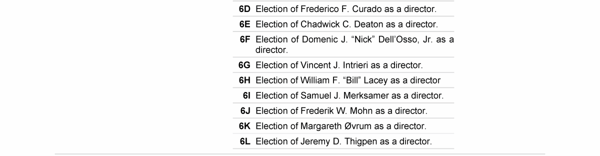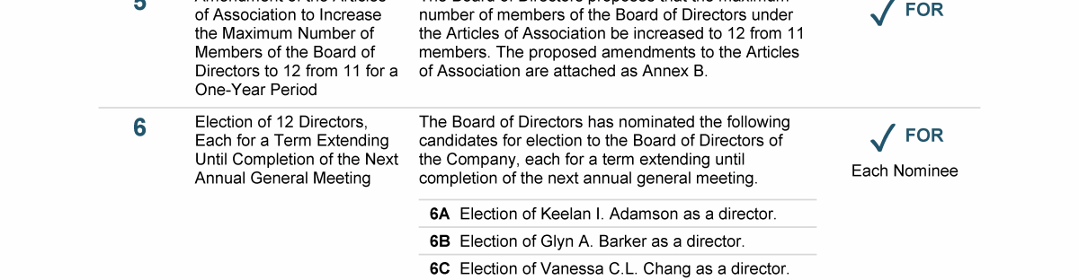 Agenda Item 6. Election of 12 Directors, Each for a Term Extending Until Completion of the Next Annual General Meeting