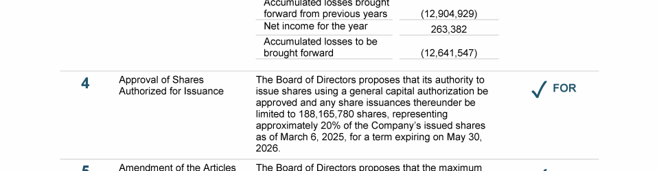 Agenda Item 4. Approval of Shares Authorized for Issuance