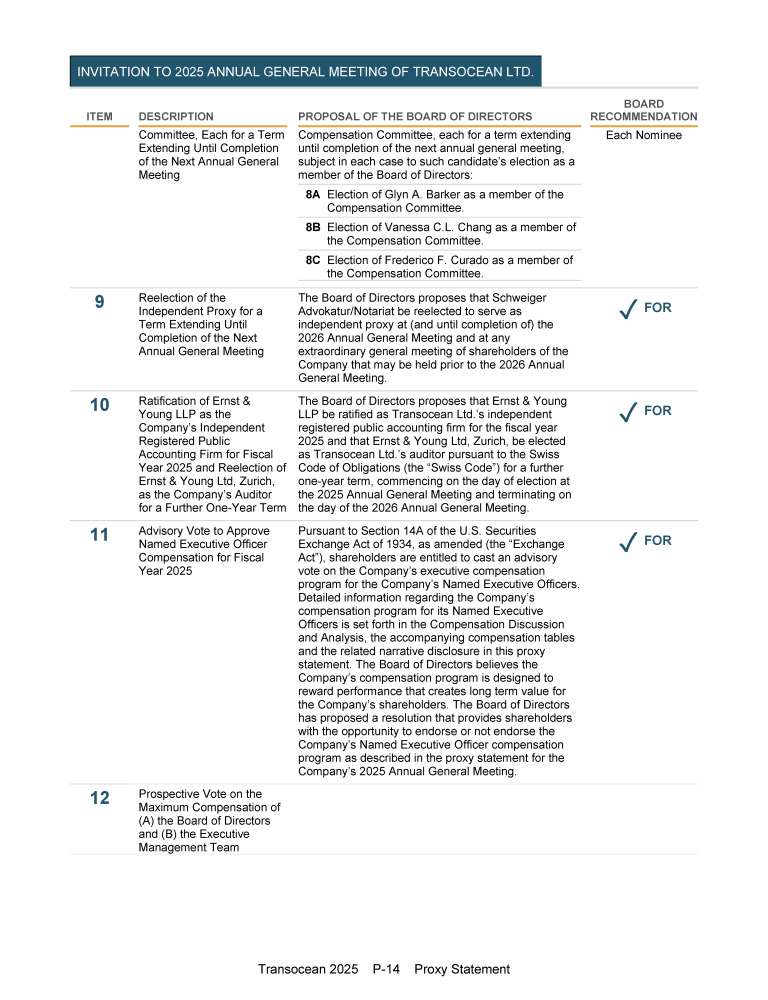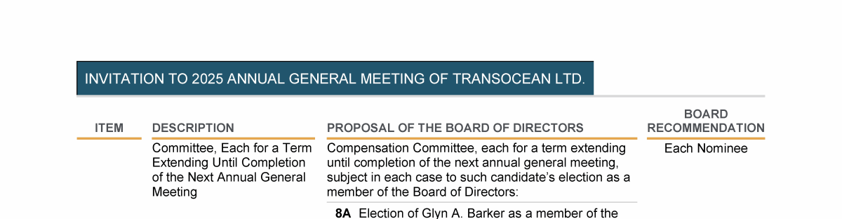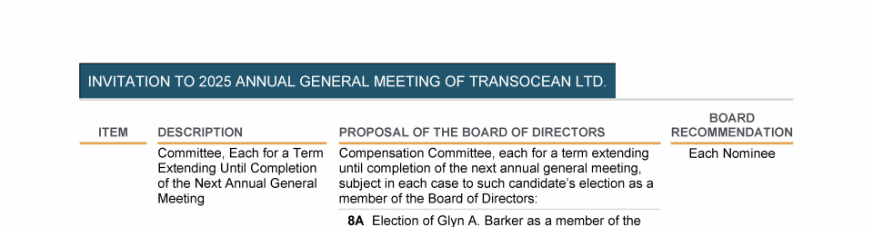 Invitation to 2025 Annual General Meeting of Transocean Ltd.