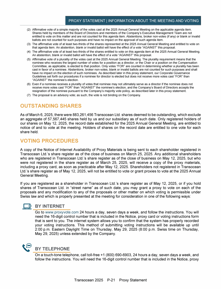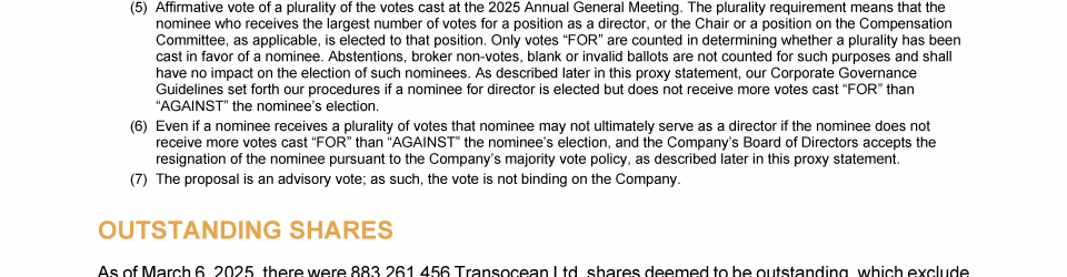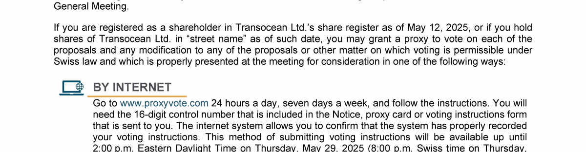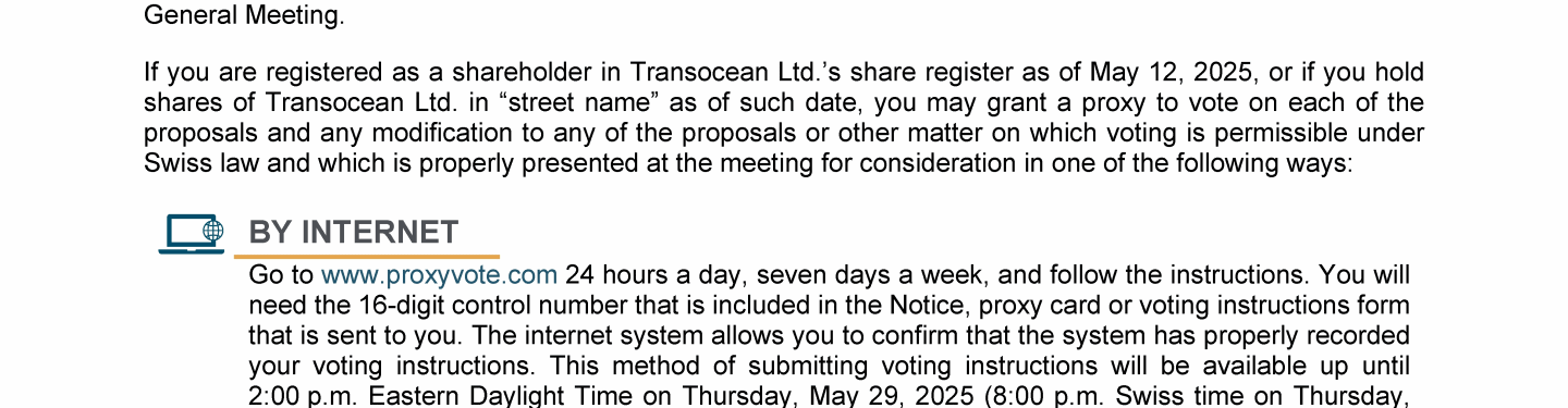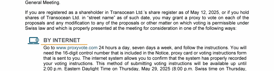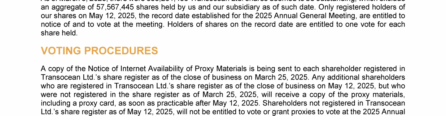 Invitation to 2025 Annual General Meeting of Transocean Ltd.