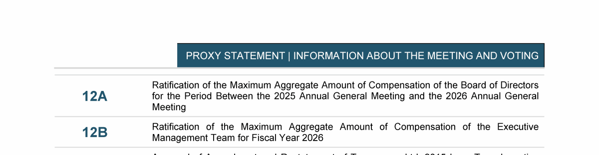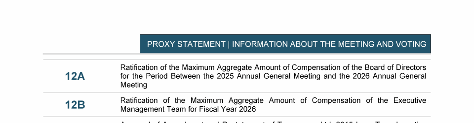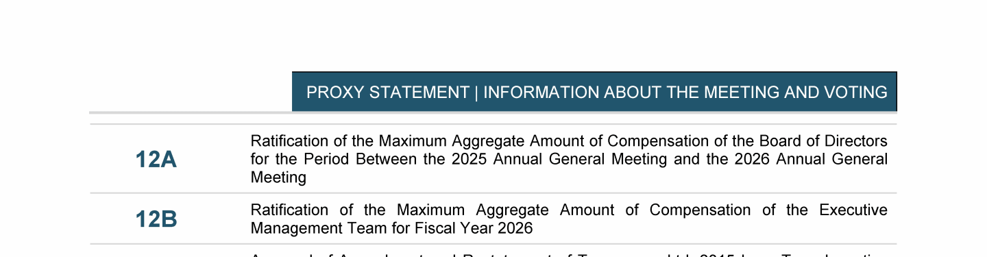 Agenda Item 12. Prospective Vote on the Maximum Compensation of (A) the Board of Directors and (B) the Executive Management Team