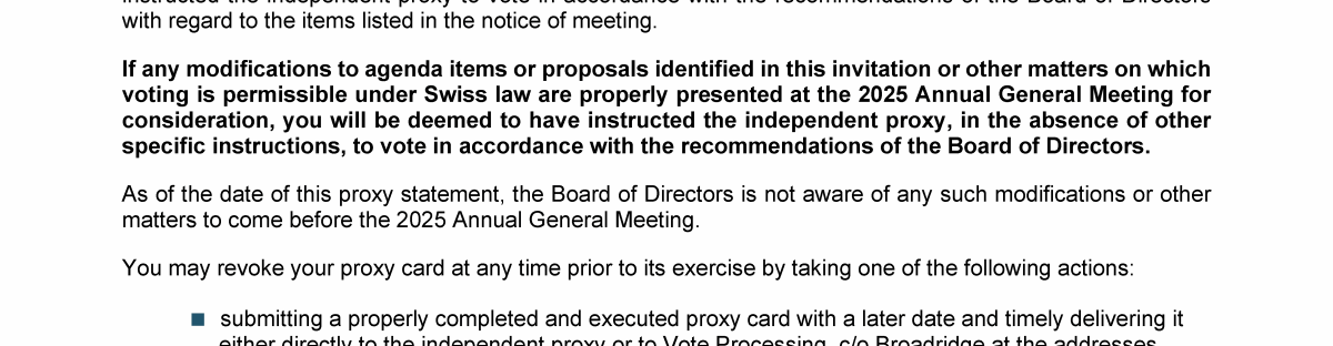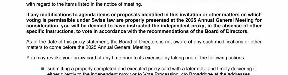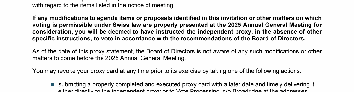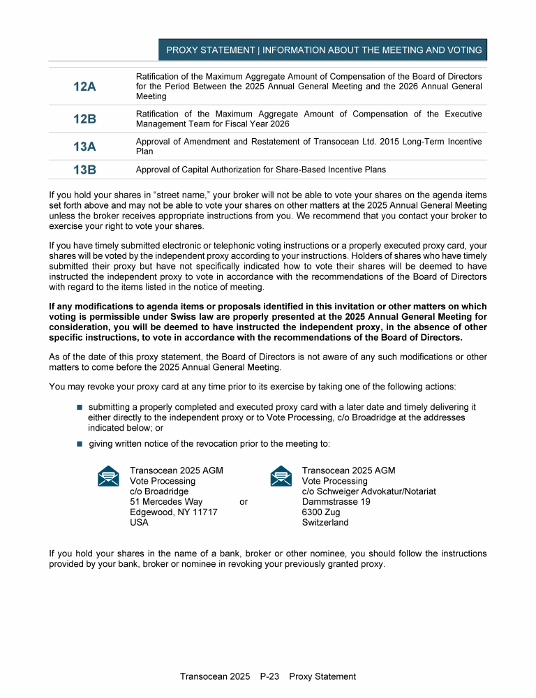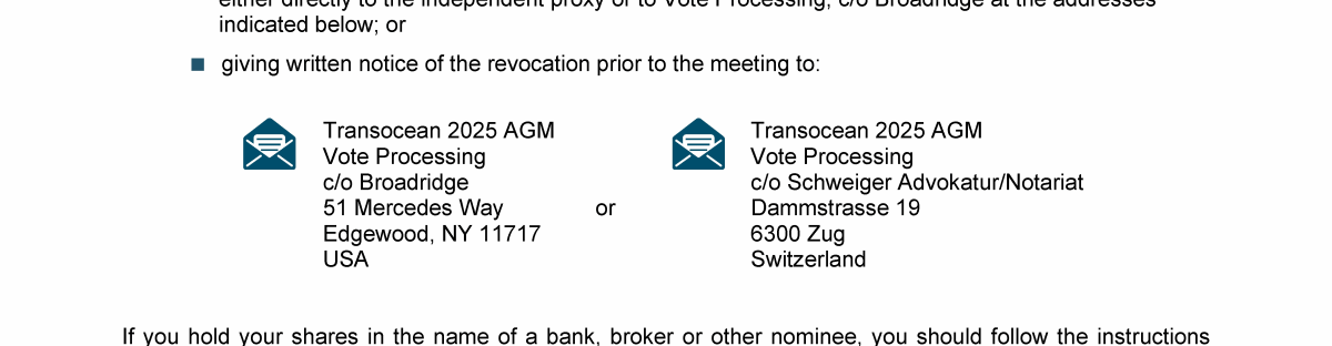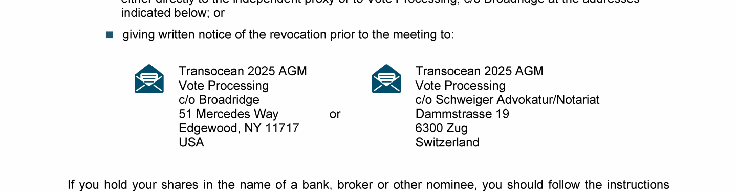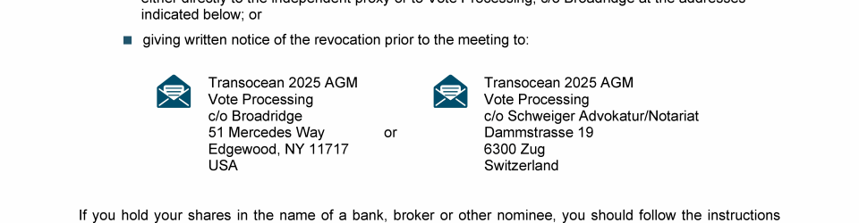 Invitation to 2025 Annual General Meeting of Transocean Ltd.