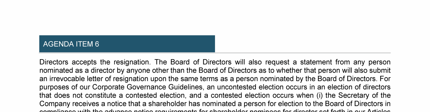 Agenda Item 6. Election of 12 Directors, Each for a Term Extending Until Completion of the Next Annual General Meeting