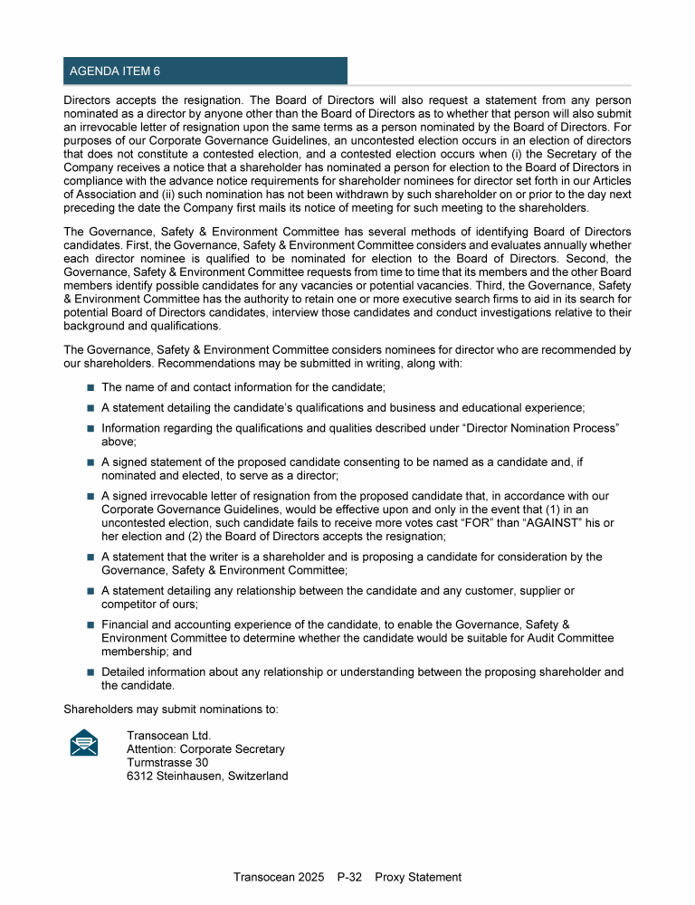 Invitation to 2025 Annual General Meeting of Transocean Ltd.