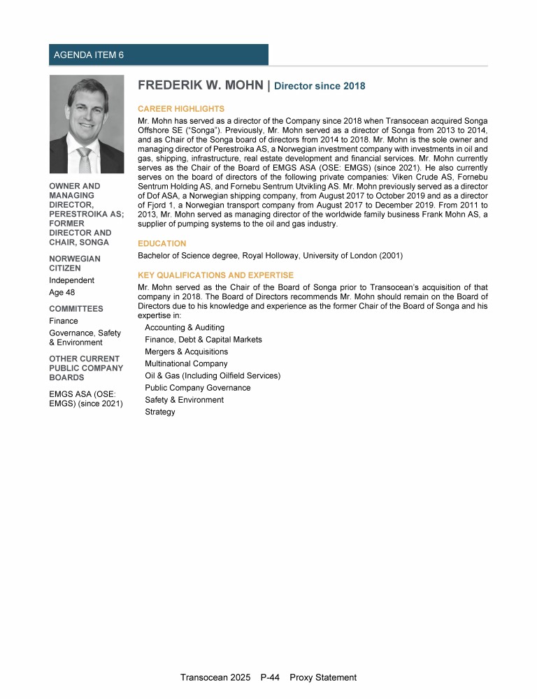 Invitation to 2025 Annual General Meeting of Transocean Ltd.