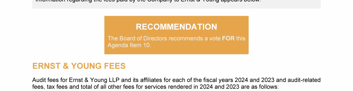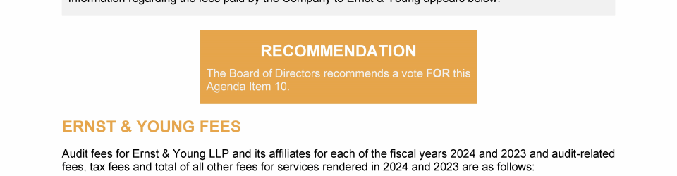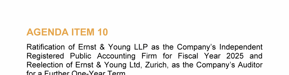 Agenda Item 10. Ratification of Ernst & Young LLP as the Company's Independent Registered Public Accounting Firm for Fiscal Year 2025 and Reelection of Ernst & Young Ltd, Zurich, as the Company's Auditor for a Further One-Year Term