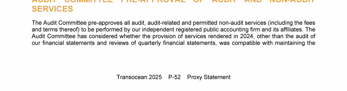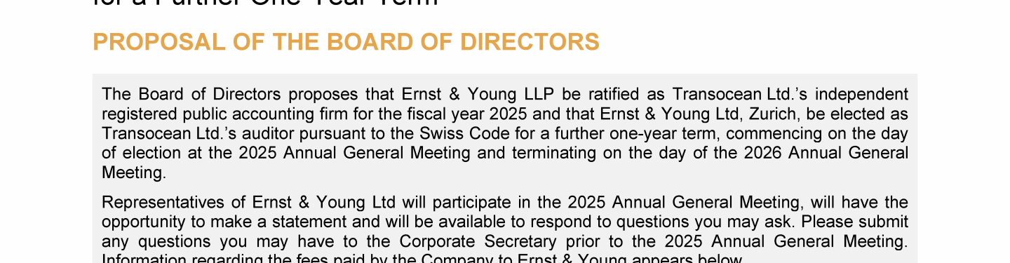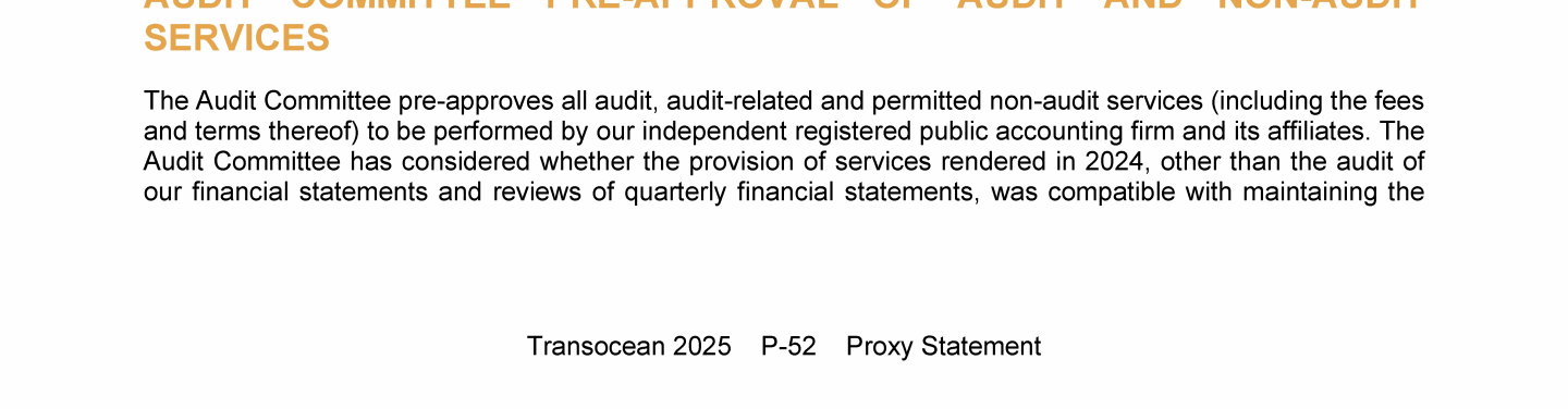 Agenda Item 1. Approval of (A) the 2024 Annual Report, Including the Audited Consolidated Financial Statements of Transocean Ltd. for Fiscal Year 2024 and the Audited Statutory Financial Statements of Transocean Ltd. for Fiscal Year 2024, (B) the Swiss Statutory Compensation Report for Fiscal Year 2024 and (C) the Swiss Statutory Report on Non-Financial Matters for Fiscal Year 2024
