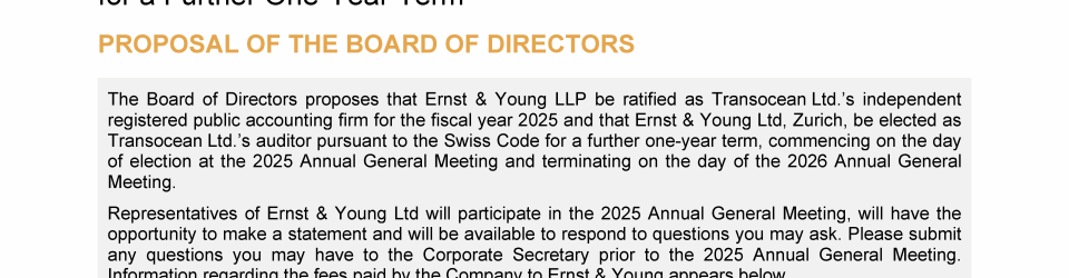 Invitation to 2025 Annual General Meeting of Transocean Ltd.