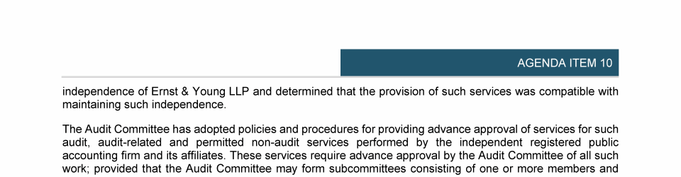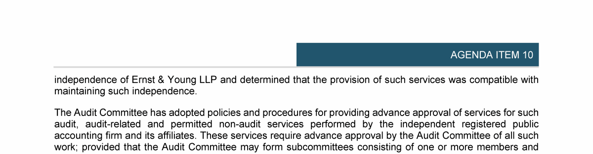 Agenda Item 10. Ratification of Ernst & Young LLP as the Company's Independent Registered Public Accounting Firm for Fiscal Year 2025 and Reelection of Ernst & Young Ltd, Zurich, as the Company's Auditor for a Further One-Year Term