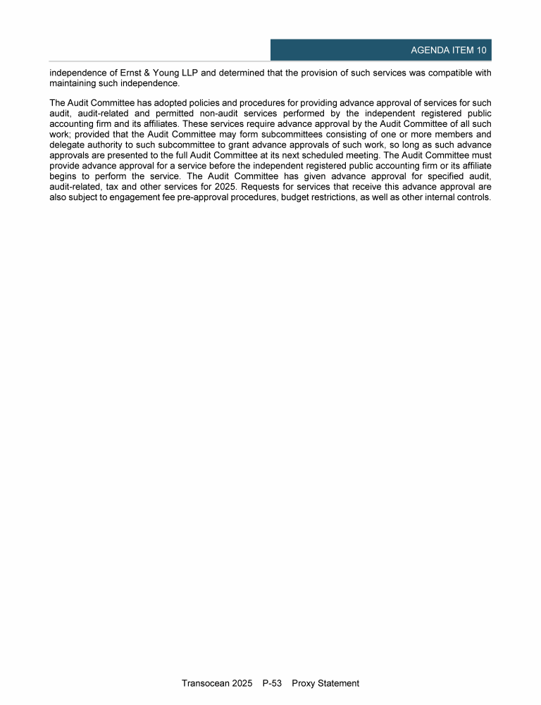 Agenda Item 1. Approval of (A) the 2024 Annual Report, Including the Audited Consolidated Financial Statements of Transocean Ltd. for Fiscal Year 2024 and the Audited Statutory Financial Statements of Transocean Ltd. for Fiscal Year 2024, (B) the Swiss Statutory Compensation Report for Fiscal Year 2024 and (C) the Swiss Statutory Report on Non-Financial Matters for Fiscal Year 2024