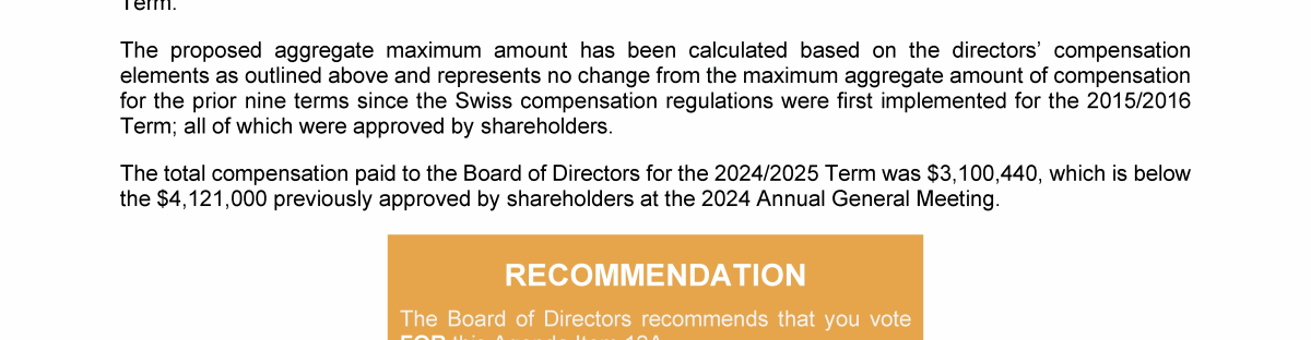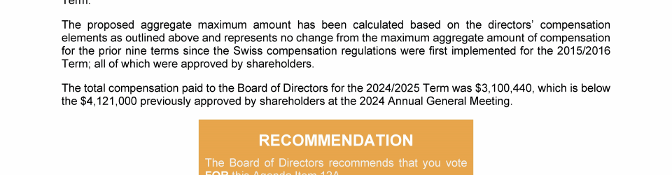 Agenda Item 12. Prospective Vote on the Maximum Compensation of (A) the Board of Directors and (B) the Executive Management Team