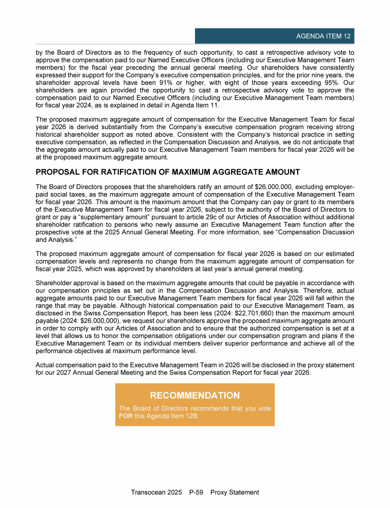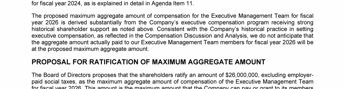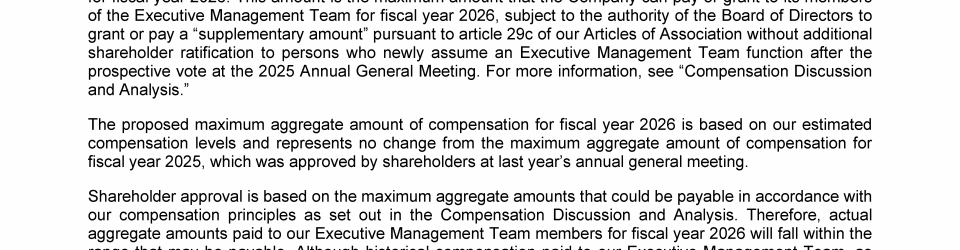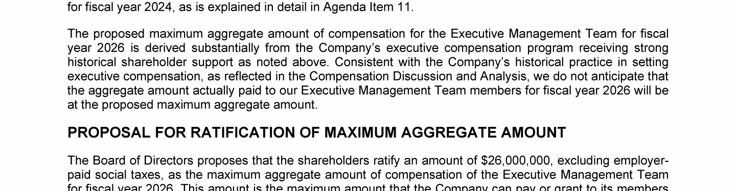 Agenda Item 12. Prospective Vote on the Maximum Compensation of (A) the Board of Directors and (B) the Executive Management Team