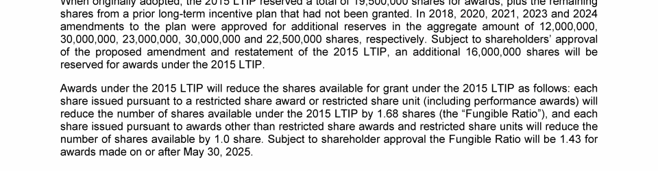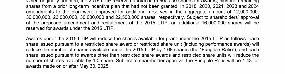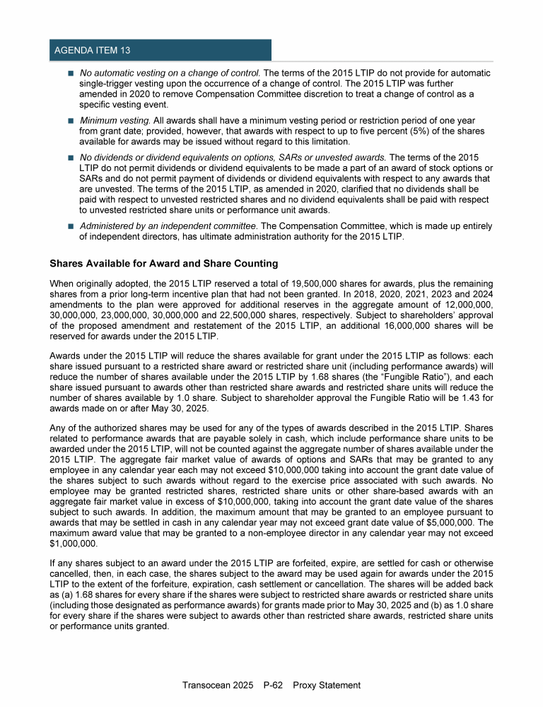 Agenda Item 13. Approval of (A) Amendment and Restatement of Transocean Ltd. 2015 Long-Term Incentive Plan and (B) Capital Authorization for Share-Based Incentive Plans