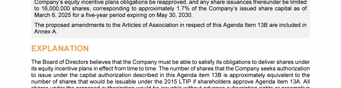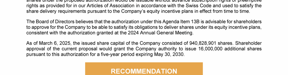 Agenda Item 4. Approval of Shares Authorized for Issuance