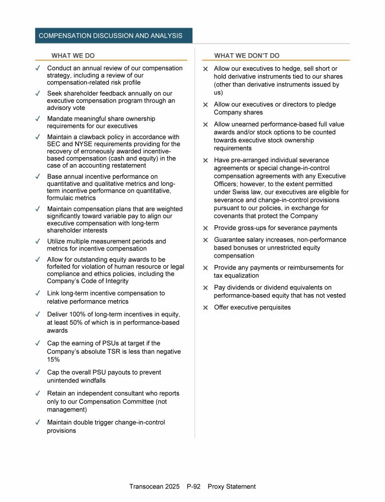 Agenda Item 1. Approval of (A) the 2024 Annual Report, Including the Audited Consolidated Financial Statements of Transocean Ltd. for Fiscal Year 2024 and the Audited Statutory Financial Statements of Transocean Ltd. for Fiscal Year 2024, (B) the Swiss Statutory Compensation Report for Fiscal Year 2024 and (C) the Swiss Statutory Report on Non-Financial Matters for Fiscal Year 2024