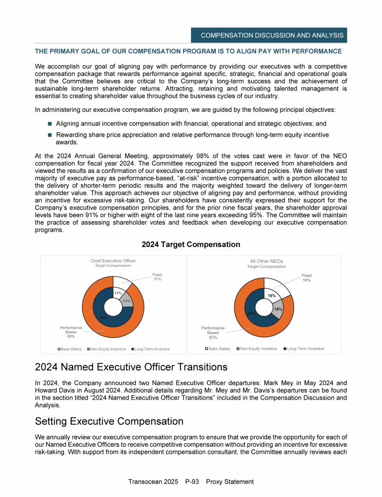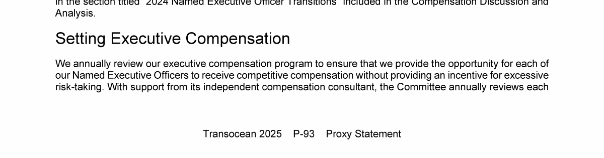 Agenda Item 1. Approval of (A) the 2024 Annual Report, Including the Audited Consolidated Financial Statements of Transocean Ltd. for Fiscal Year 2024 and the Audited Statutory Financial Statements of Transocean Ltd. for Fiscal Year 2024, (B) the Swiss Statutory Compensation Report for Fiscal Year 2024 and (C) the Swiss Statutory Report on Non-Financial Matters for Fiscal Year 2024