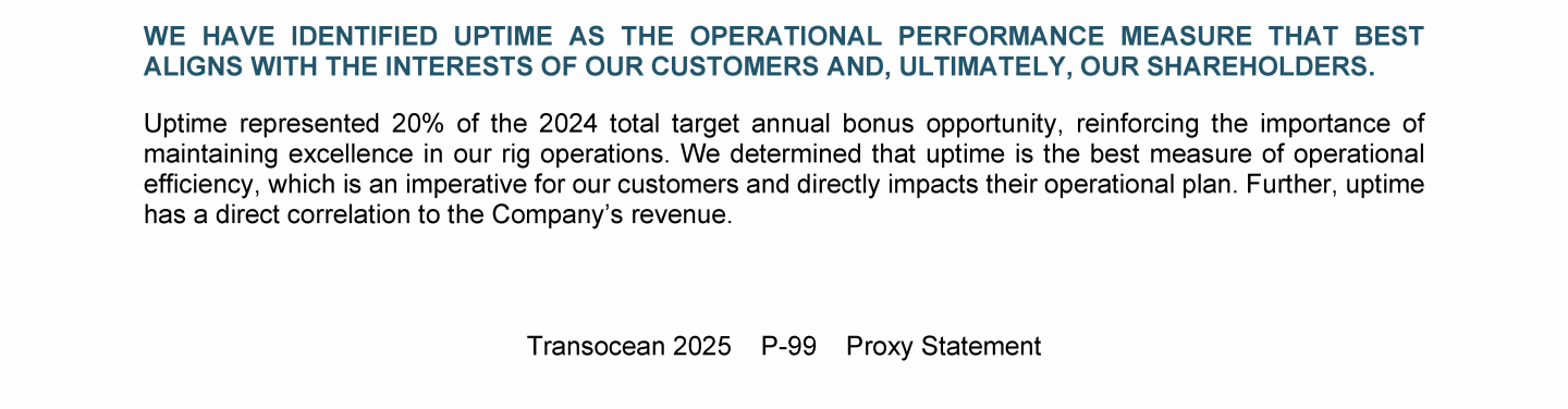Agenda Item 1. Approval of (A) the 2024 Annual Report, Including the Audited Consolidated Financial Statements of Transocean Ltd. for Fiscal Year 2024 and the Audited Statutory Financial Statements of Transocean Ltd. for Fiscal Year 2024, (B) the Swiss Statutory Compensation Report for Fiscal Year 2024 and (C) the Swiss Statutory Report on Non-Financial Matters for Fiscal Year 2024