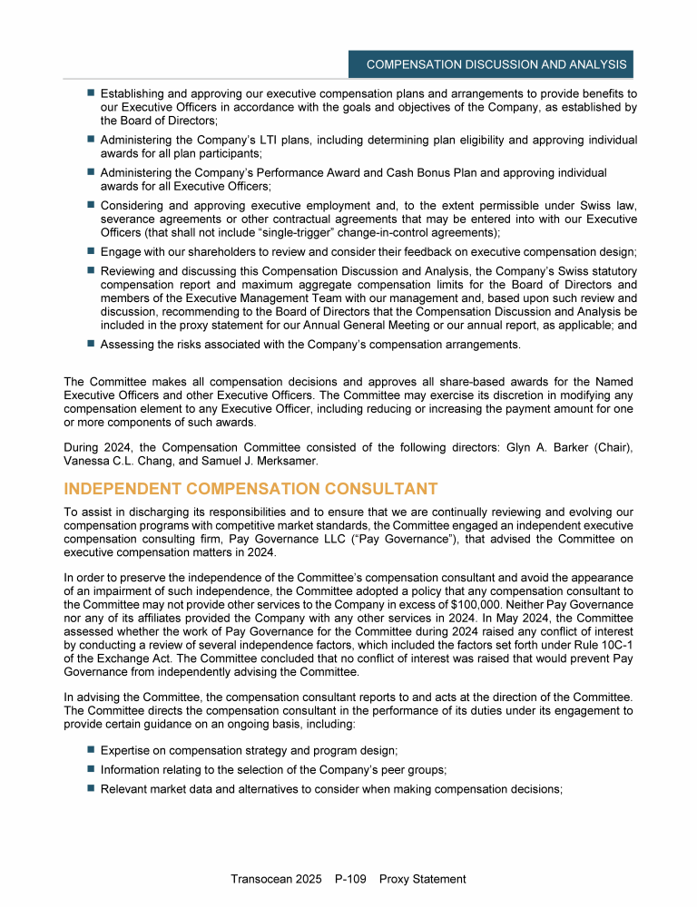 Agenda Item 1. Approval of (A) the 2024 Annual Report, Including the Audited Consolidated Financial Statements of Transocean Ltd. for Fiscal Year 2024 and the Audited Statutory Financial Statements of Transocean Ltd. for Fiscal Year 2024, (B) the Swiss Statutory Compensation Report for Fiscal Year 2024 and (C) the Swiss Statutory Report on Non-Financial Matters for Fiscal Year 2024