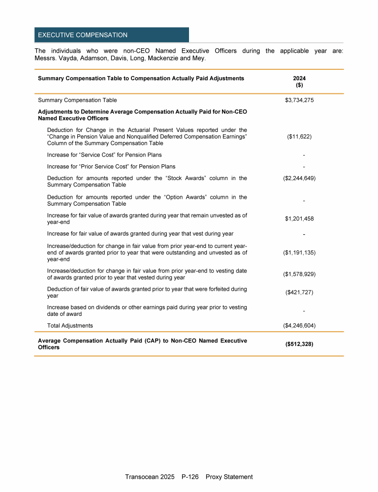 Agenda Item 1. Approval of (A) the 2024 Annual Report, Including the Audited Consolidated Financial Statements of Transocean Ltd. for Fiscal Year 2024 and the Audited Statutory Financial Statements of Transocean Ltd. for Fiscal Year 2024, (B) the Swiss Statutory Compensation Report for Fiscal Year 2024 and (C) the Swiss Statutory Report on Non-Financial Matters for Fiscal Year 2024