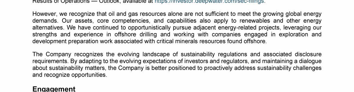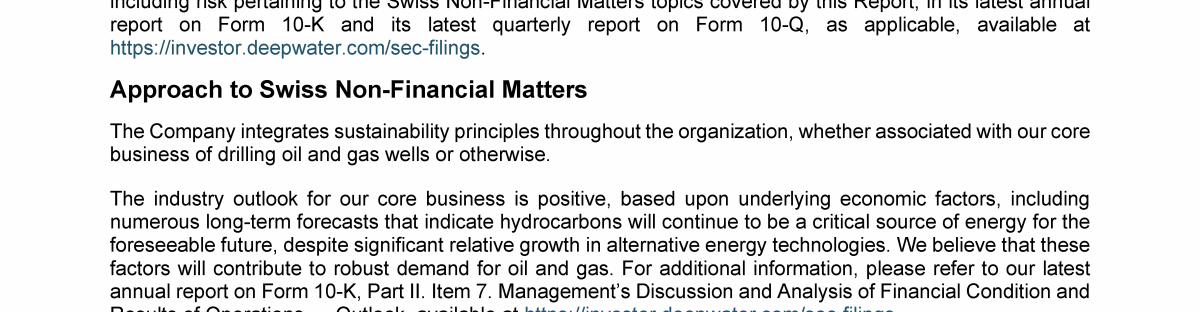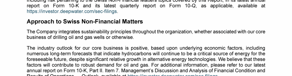 Agenda Item 1. Approval of (A) the 2024 Annual Report, Including the Audited Consolidated Financial Statements of Transocean Ltd. for Fiscal Year 2024 and the Audited Statutory Financial Statements of Transocean Ltd. for Fiscal Year 2024, (B) the Swiss Statutory Compensation Report for Fiscal Year 2024 and (C) the Swiss Statutory Report on Non-Financial Matters for Fiscal Year 2024