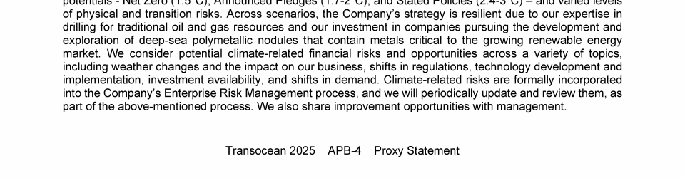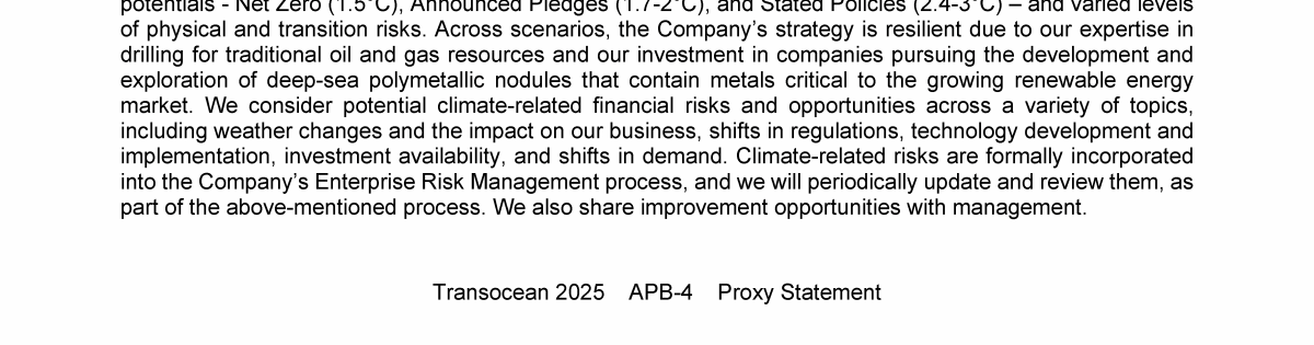 Agenda Item 1. Approval of (A) the 2024 Annual Report, Including the Audited Consolidated Financial Statements of Transocean Ltd. for Fiscal Year 2024 and the Audited Statutory Financial Statements of Transocean Ltd. for Fiscal Year 2024, (B) the Swiss Statutory Compensation Report for Fiscal Year 2024 and (C) the Swiss Statutory Report on Non-Financial Matters for Fiscal Year 2024