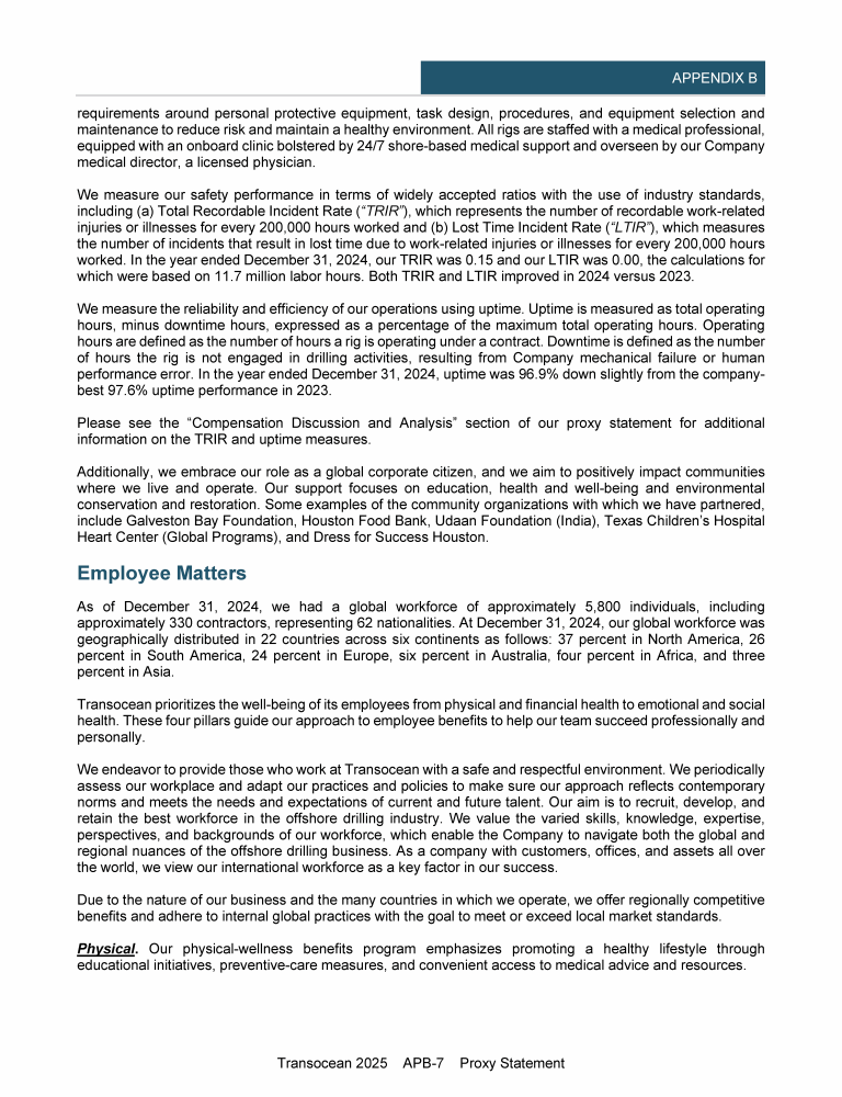 Agenda Item 1. Approval of (A) the 2024 Annual Report, Including the Audited Consolidated Financial Statements of Transocean Ltd. for Fiscal Year 2024 and the Audited Statutory Financial Statements of Transocean Ltd. for Fiscal Year 2024, (B) the Swiss Statutory Compensation Report for Fiscal Year 2024 and (C) the Swiss Statutory Report on Non-Financial Matters for Fiscal Year 2024
