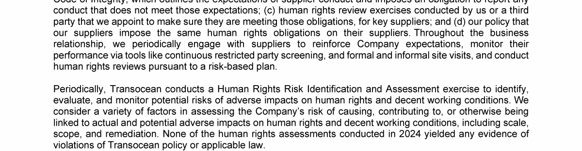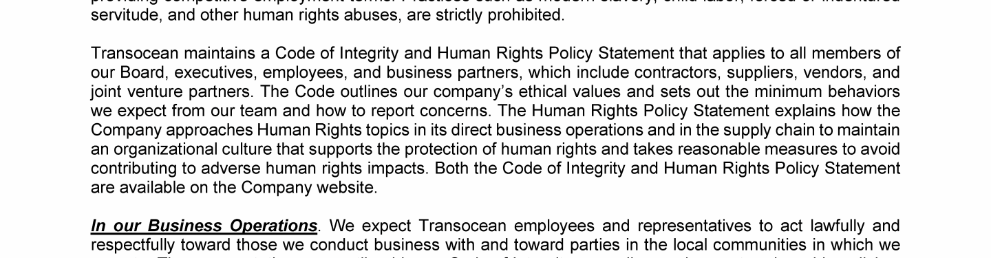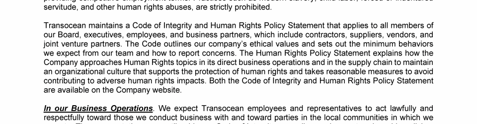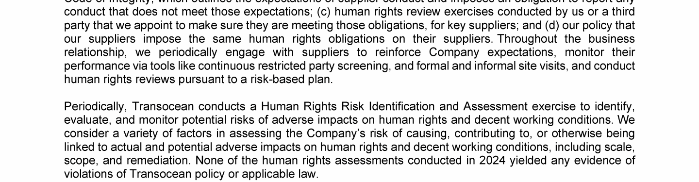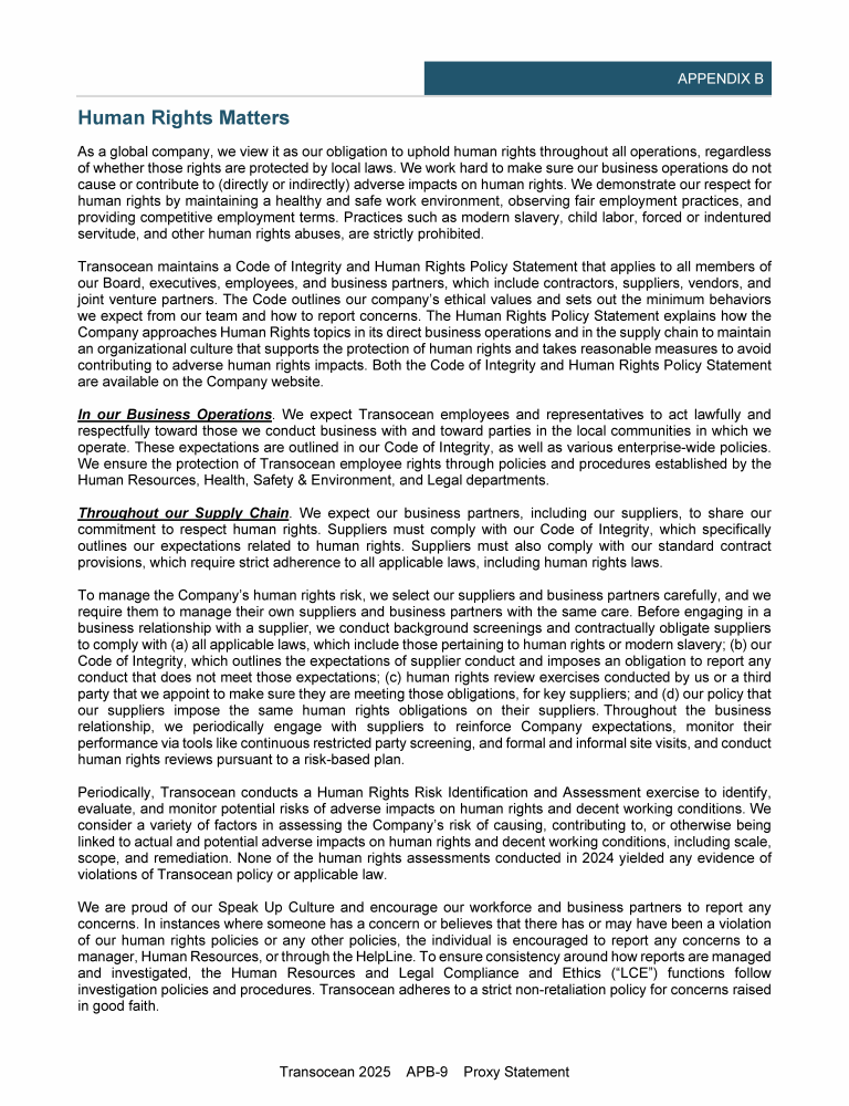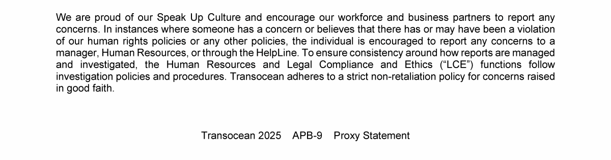 Agenda Item 1. Approval of (A) the 2024 Annual Report, Including the Audited Consolidated Financial Statements of Transocean Ltd. for Fiscal Year 2024 and the Audited Statutory Financial Statements of Transocean Ltd. for Fiscal Year 2024, (B) the Swiss Statutory Compensation Report for Fiscal Year 2024 and (C) the Swiss Statutory Report on Non-Financial Matters for Fiscal Year 2024