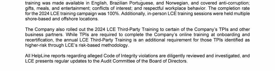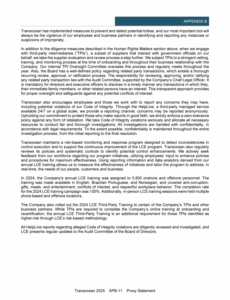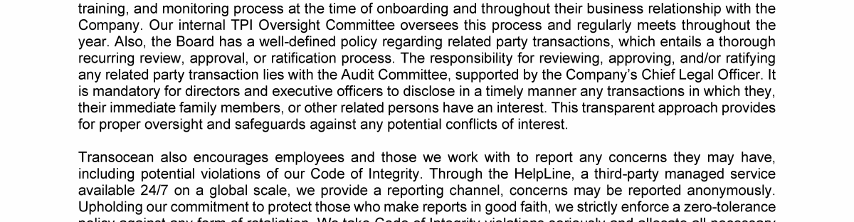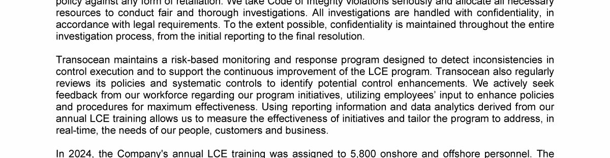 Agenda Item 1. Approval of (A) the 2024 Annual Report, Including the Audited Consolidated Financial Statements of Transocean Ltd. for Fiscal Year 2024 and the Audited Statutory Financial Statements of Transocean Ltd. for Fiscal Year 2024, (B) the Swiss Statutory Compensation Report for Fiscal Year 2024 and (C) the Swiss Statutory Report on Non-Financial Matters for Fiscal Year 2024