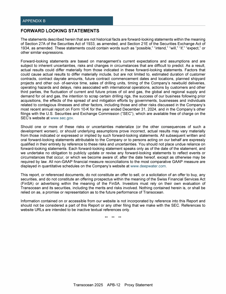 Agenda Item 1. Approval of (A) the 2024 Annual Report, Including the Audited Consolidated Financial Statements of Transocean Ltd. for Fiscal Year 2024 and the Audited Statutory Financial Statements of Transocean Ltd. for Fiscal Year 2024, (B) the Swiss Statutory Compensation Report for Fiscal Year 2024 and (C) the Swiss Statutory Report on Non-Financial Matters for Fiscal Year 2024