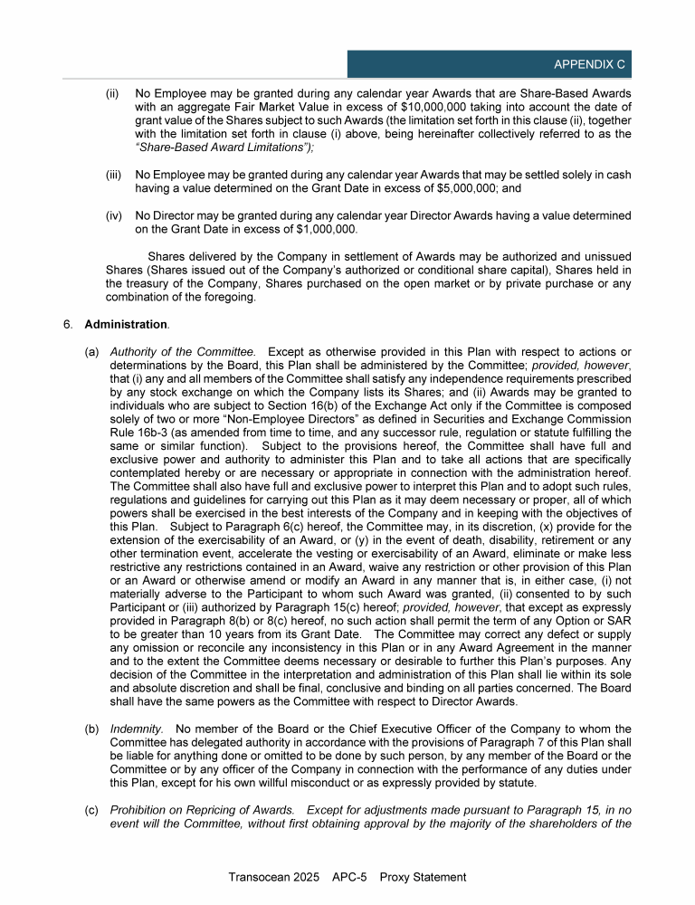Agenda Item 1. Approval of (A) the 2024 Annual Report, Including the Audited Consolidated Financial Statements of Transocean Ltd. for Fiscal Year 2024 and the Audited Statutory Financial Statements of Transocean Ltd. for Fiscal Year 2024, (B) the Swiss Statutory Compensation Report for Fiscal Year 2024 and (C) the Swiss Statutory Report on Non-Financial Matters for Fiscal Year 2024