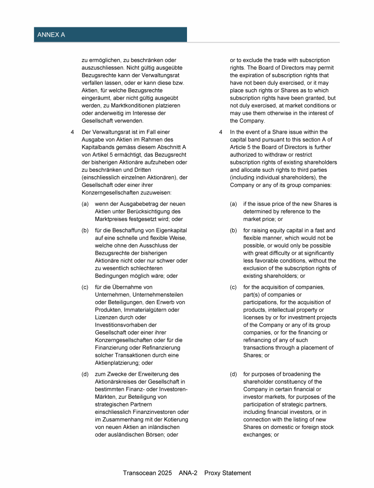 Invitation to 2025 Annual General Meeting of Transocean Ltd.