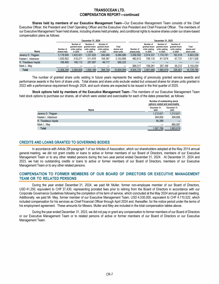 Agenda Item 1. Approval of (A) the 2024 Annual Report, Including the Audited Consolidated Financial Statements of Transocean Ltd. for Fiscal Year 2024 and the Audited Statutory Financial Statements of Transocean Ltd. for Fiscal Year 2024, (B) the Swiss Statutory Compensation Report for Fiscal Year 2024 and (C) the Swiss Statutory Report on Non-Financial Matters for Fiscal Year 2024