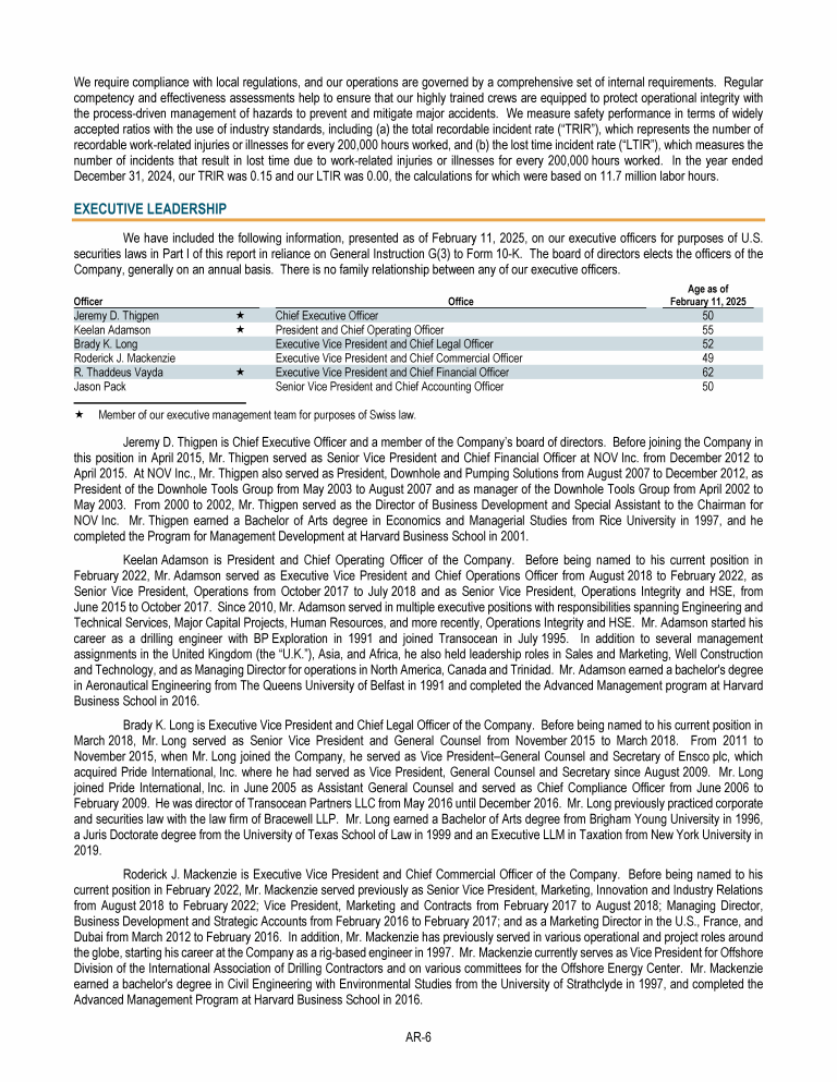 Agenda Item 1. Approval of (A) the 2024 Annual Report, Including the Audited Consolidated Financial Statements of Transocean Ltd. for Fiscal Year 2024 and the Audited Statutory Financial Statements of Transocean Ltd. for Fiscal Year 2024, (B) the Swiss Statutory Compensation Report for Fiscal Year 2024 and (C) the Swiss Statutory Report on Non-Financial Matters for Fiscal Year 2024
