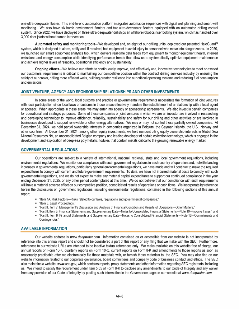 Agenda Item 1. Approval of (A) the 2024 Annual Report, Including the Audited Consolidated Financial Statements of Transocean Ltd. for Fiscal Year 2024 and the Audited Statutory Financial Statements of Transocean Ltd. for Fiscal Year 2024, (B) the Swiss Statutory Compensation Report for Fiscal Year 2024 and (C) the Swiss Statutory Report on Non-Financial Matters for Fiscal Year 2024