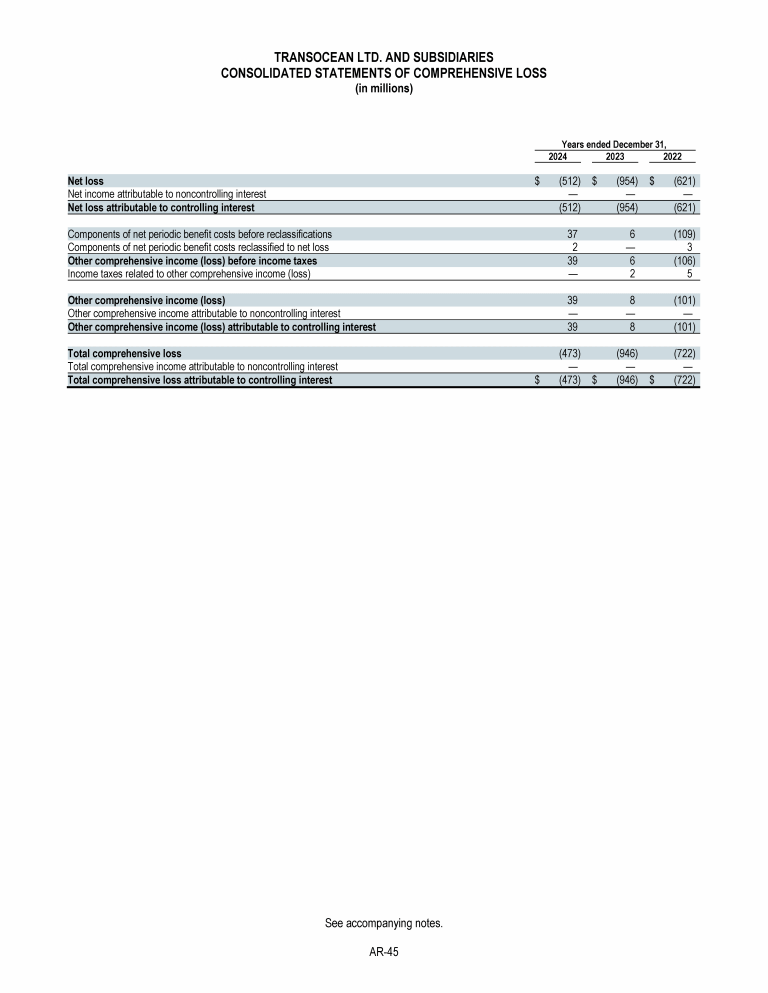 Agenda Item 1. Approval of (A) the 2024 Annual Report, Including the Audited Consolidated Financial Statements of Transocean Ltd. for Fiscal Year 2024 and the Audited Statutory Financial Statements of Transocean Ltd. for Fiscal Year 2024, (B) the Swiss Statutory Compensation Report for Fiscal Year 2024 and (C) the Swiss Statutory Report on Non-Financial Matters for Fiscal Year 2024