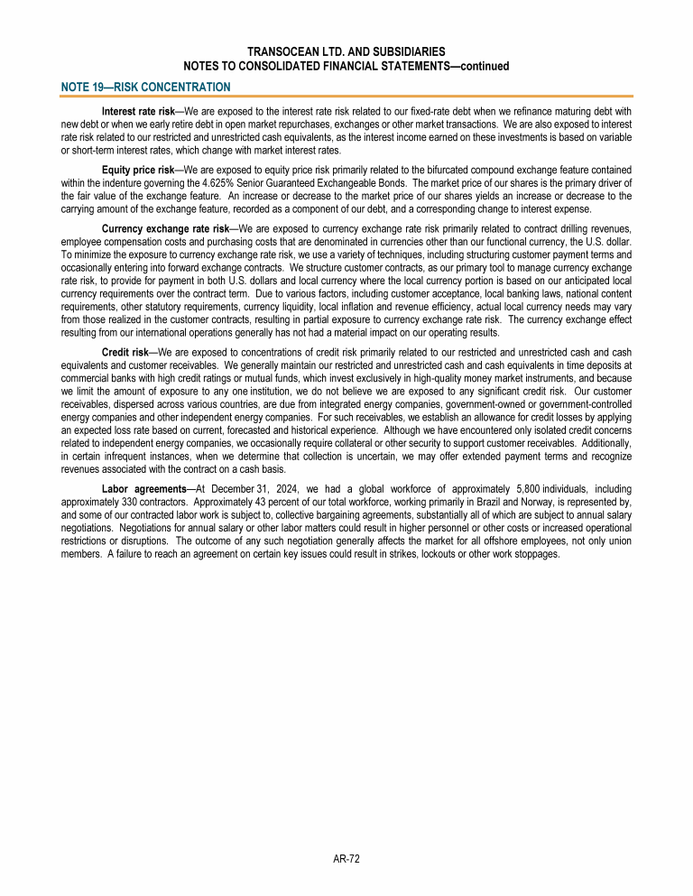 Agenda Item 1. Approval of (A) the 2024 Annual Report, Including the Audited Consolidated Financial Statements of Transocean Ltd. for Fiscal Year 2024 and the Audited Statutory Financial Statements of Transocean Ltd. for Fiscal Year 2024, (B) the Swiss Statutory Compensation Report for Fiscal Year 2024 and (C) the Swiss Statutory Report on Non-Financial Matters for Fiscal Year 2024