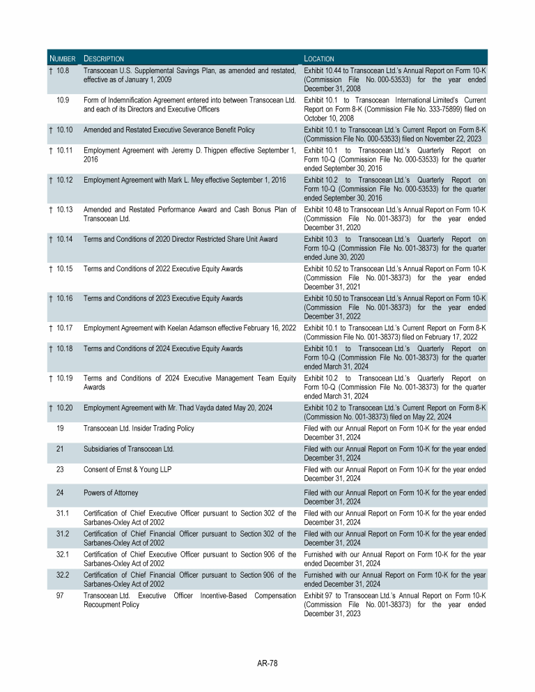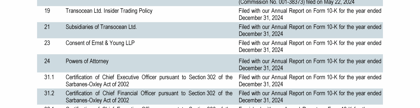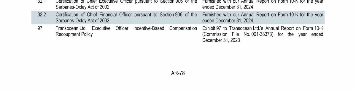 Agenda Item 1. Approval of (A) the 2024 Annual Report, Including the Audited Consolidated Financial Statements of Transocean Ltd. for Fiscal Year 2024 and the Audited Statutory Financial Statements of Transocean Ltd. for Fiscal Year 2024, (B) the Swiss Statutory Compensation Report for Fiscal Year 2024 and (C) the Swiss Statutory Report on Non-Financial Matters for Fiscal Year 2024