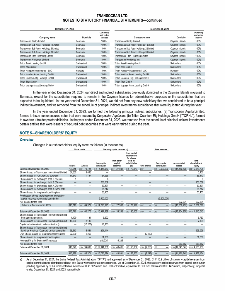 Agenda Item 1. Approval of (A) the 2024 Annual Report, Including the Audited Consolidated Financial Statements of Transocean Ltd. for Fiscal Year 2024 and the Audited Statutory Financial Statements of Transocean Ltd. for Fiscal Year 2024, (B) the Swiss Statutory Compensation Report for Fiscal Year 2024 and (C) the Swiss Statutory Report on Non-Financial Matters for Fiscal Year 2024