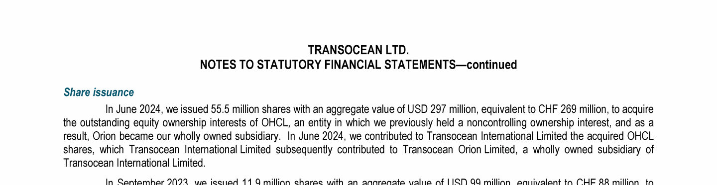 Agenda Item 1. Approval of (A) the 2024 Annual Report, Including the Audited Consolidated Financial Statements of Transocean Ltd. for Fiscal Year 2024 and the Audited Statutory Financial Statements of Transocean Ltd. for Fiscal Year 2024, (B) the Swiss Statutory Compensation Report for Fiscal Year 2024 and (C) the Swiss Statutory Report on Non-Financial Matters for Fiscal Year 2024