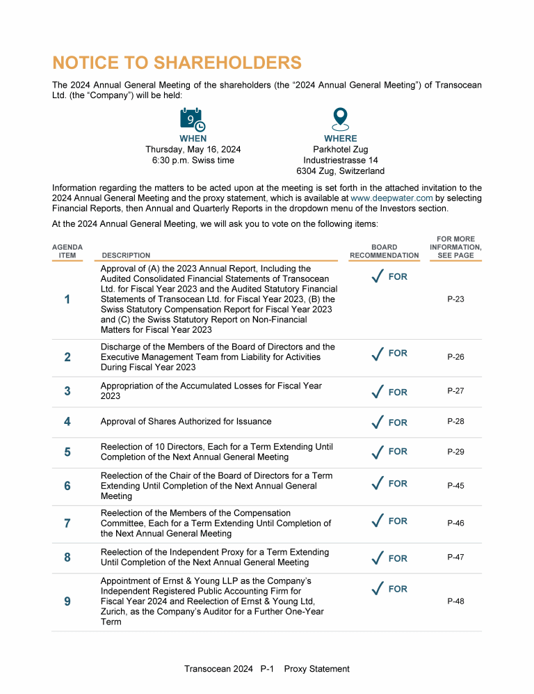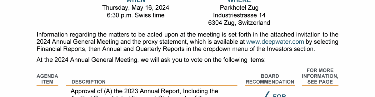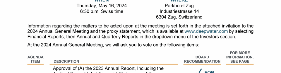 Invitation to 2024 Annual General Meeting of Transocean Ltd.