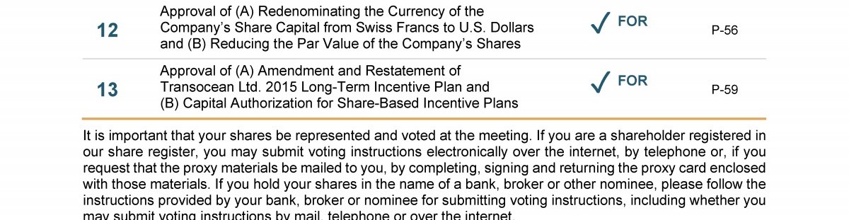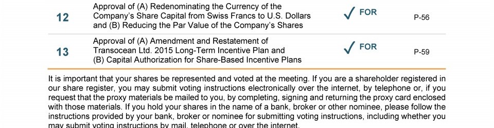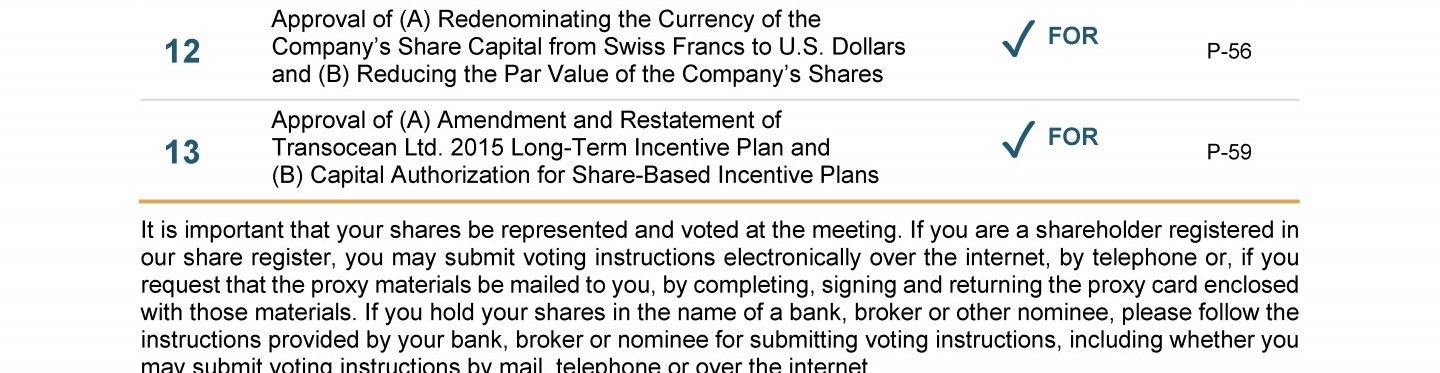 Agenda Item 13. Approval of (A) Amendment and Restatement of Transocean Ltd. 2015 Long-Term Incentive Plan and (B) Capital Authorization for Share-Based Incentive Plans
